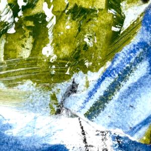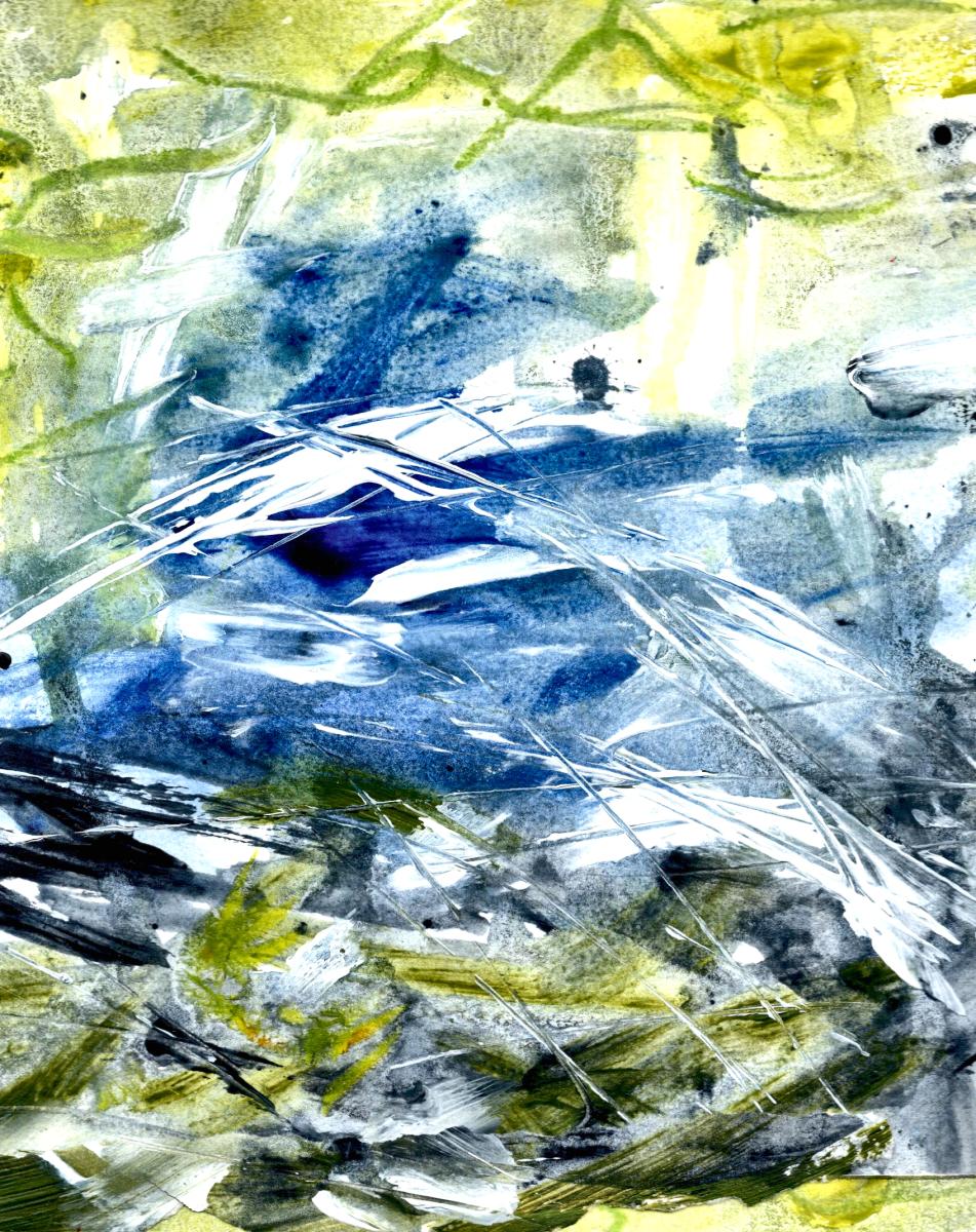 I started drawing and painting in early 2017 and enjoyed it so much that I was soon experimenting with mediums - watercolour, gouache and acrylics as well as pastels, charcoal and inks - and with genres - a few portraits and still-lifes but even in the very early days, abstracts. I signed up for a number of courses - both real and online - which helped me a lot to see the options and learn the techniques, and after a few years of 'fun and fiddling' I settled on the approach that gave me - and still gives me - the most satisfaction: abstracts produced using acrylics and often with the addition of aspects of collage.