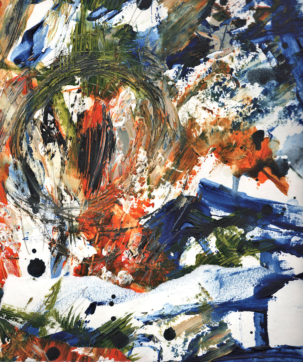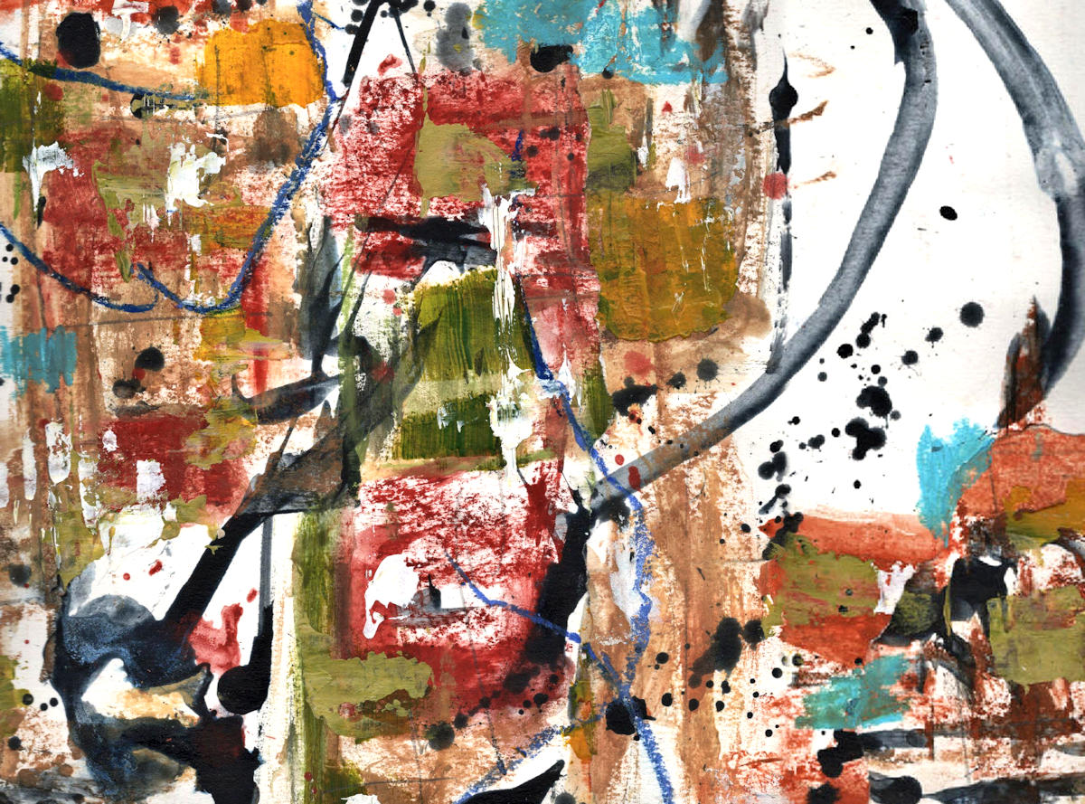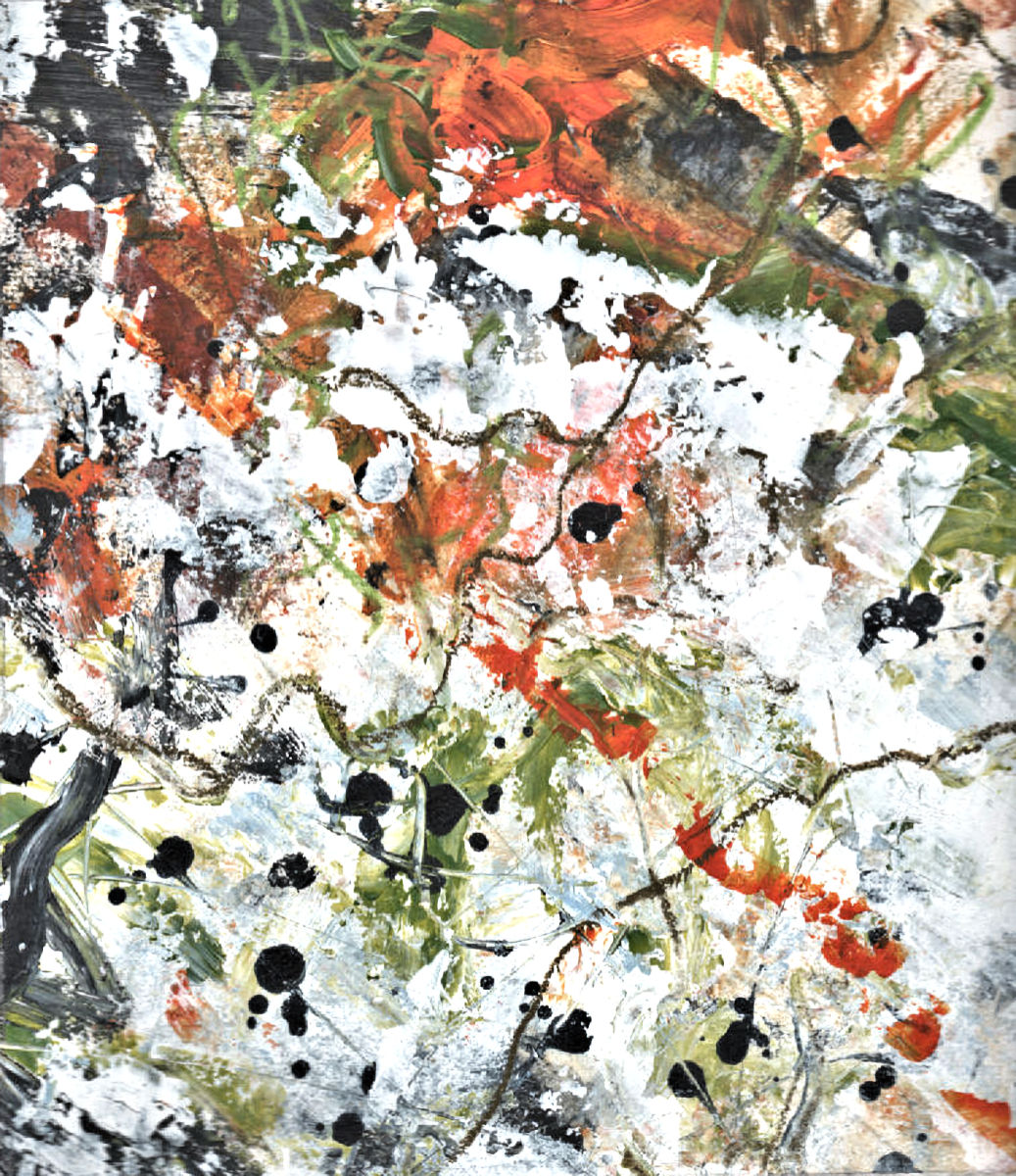 I started drawing and painting in early 2017 and enjoyed it so much that I was soon experimenting with mediums - watercolour, gouache and acrylics as well as pastels, charcoal and inks - and with genres - a few portraits and still-lifes but even in the very early days, abstracts. I signed up for a number of courses - both real and online - which helped me a lot to see the options and learn the techniques, and after a few years of 'fun and fiddling' I settled on the approach that gave me - and still gives me - the most satisfaction: abstracts produced using acrylics and often with the addition of aspects of collage.